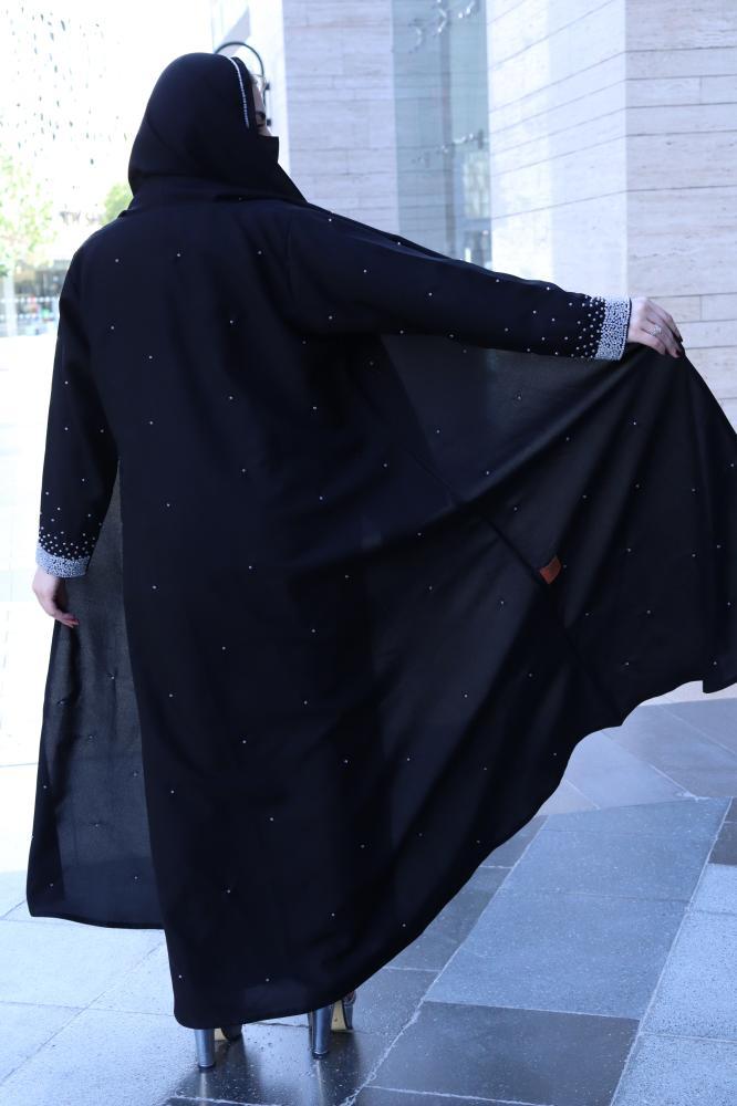 - تفاصيل لؤلؤية دقيقة تمنح العباية طابعًا مميزًا يناسب مختلف المناسبات